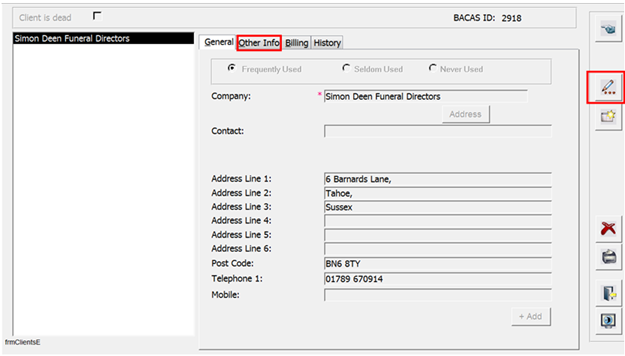 The Funeral Director Information screen will be displayed. Select the Other Info Tab and click on the Edit pencil |