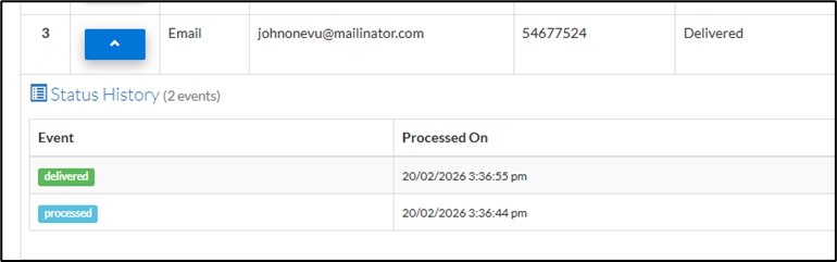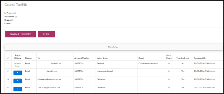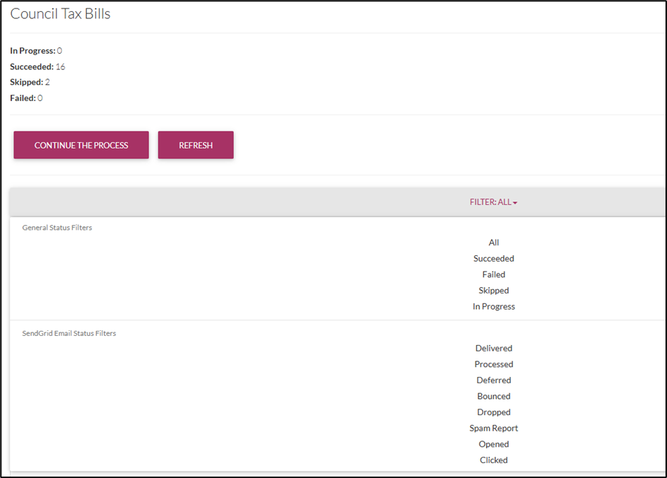 For large notification runs, filters are available to sort the data, you can filter by both the General status and the Delivery status: