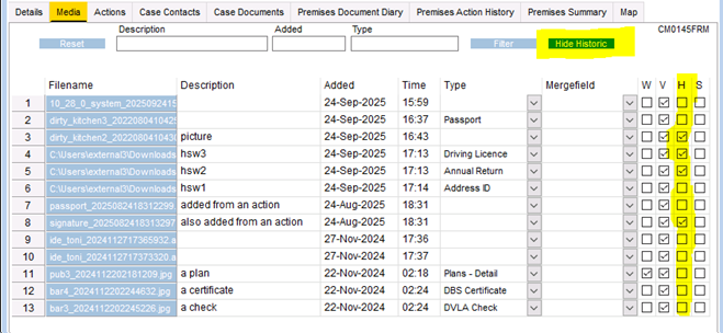 All media screens now have an ‘historic’ indicator to allow media records to be marked as archived or historic.