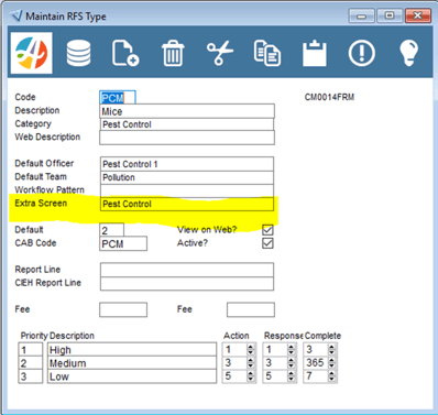 Requests for Service extra details/popup screens now run from RFS Types and not from RFS Categories.