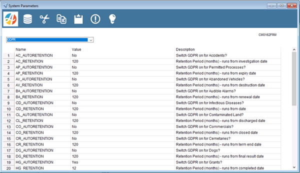 A new set of GPPR Rules can be created to automate how the system deals with retention periods, record types, within modules, media, documents and action notes associated with records.