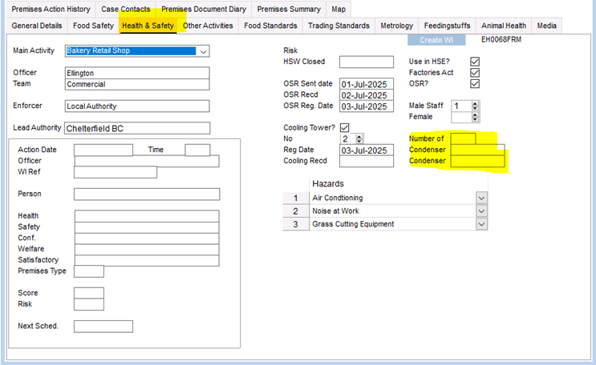 There are new fields available in the health and safety tab for Commercials for Condensers.
