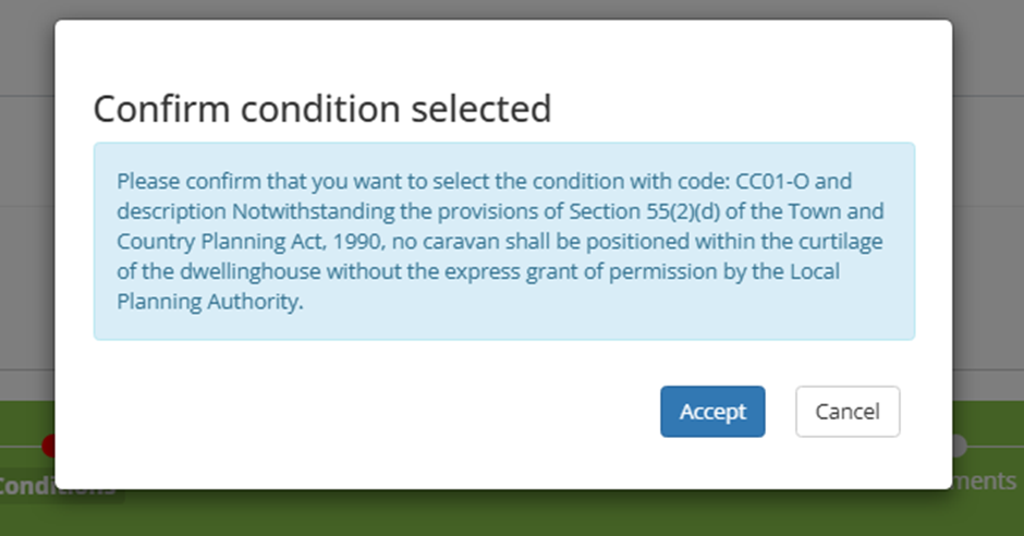 Planning Submissions – Conditions selection