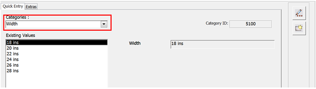 The Quick Entry screen will be displayed Select Width from the drop down list under Categories |