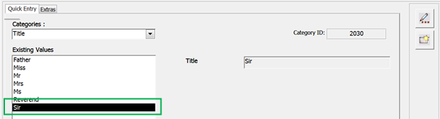 The Quick Entry screen will be displayed Select Title from the drop down list under Categories |